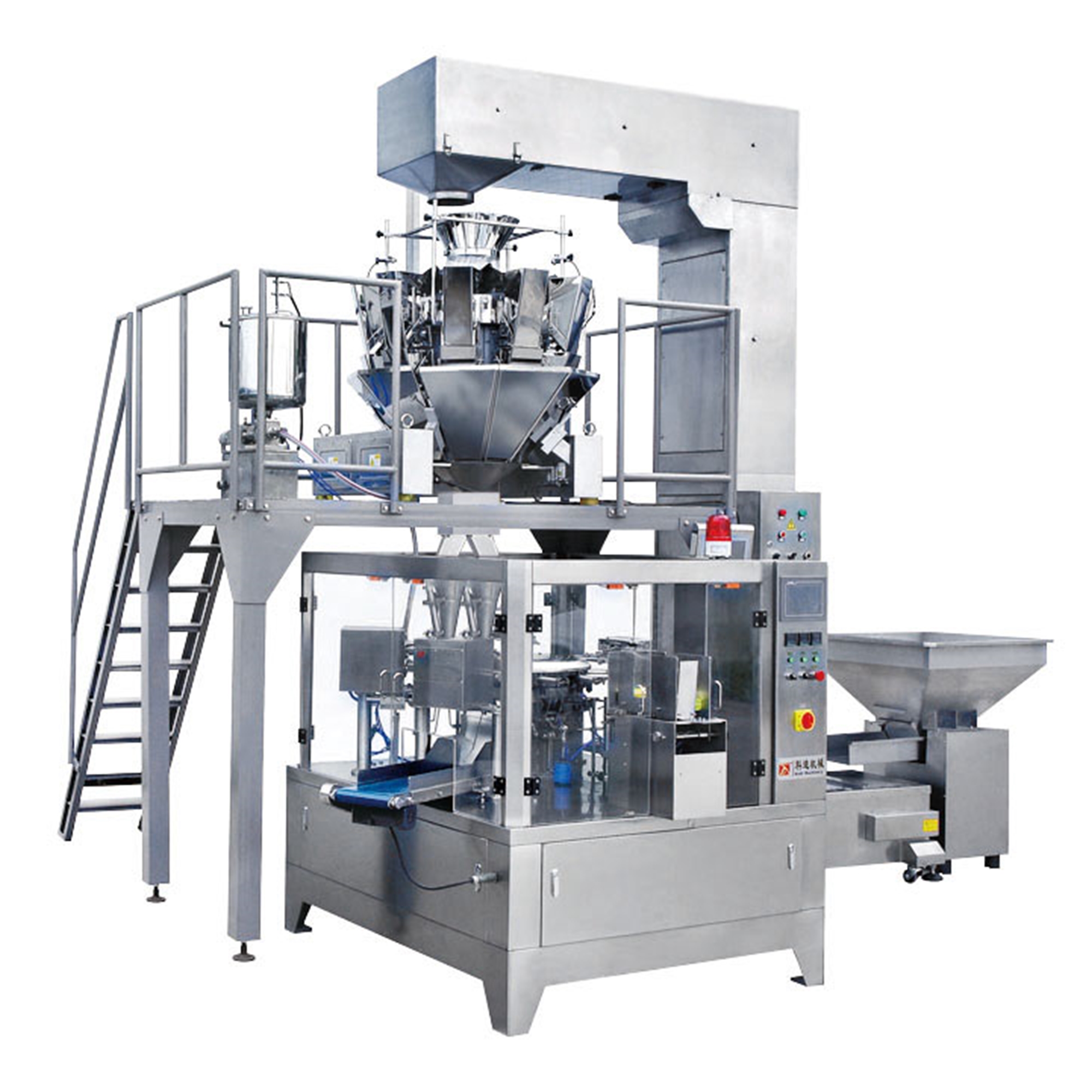 Rotary vacuum snacks food packaging machine with multihead weigher for weighing packing snacks food